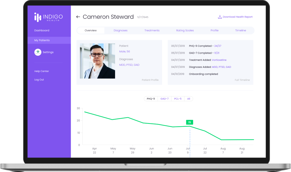 Indigo generates a beautiful report that serves as a starting point to better understand your patient.